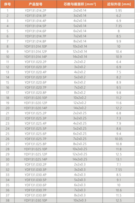 彎曲半徑                :     非拖鏈內(nèi)運(yùn)動(dòng):10.0X電纜外徑