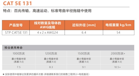 彎曲半徑 : 非拖鏈內(nèi)運(yùn)動(dòng):6.0X電纜外徑